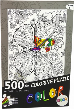 V kompletu najdete 500 kosov črno-belih sestavljank in 6 flomastrov, s katerimi lahko pobarvate sliko po svoji domišljiji. Na sestavljanki je upodobljen čudovit metulj, obdan s cvetovi.