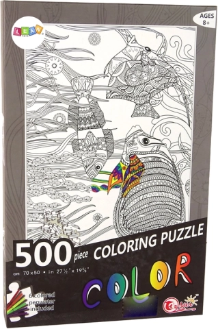 Pobarvanka puzzle ponujajo nešteto ustvarjalnih možnosti. Set vsebuje 500 črno-belih koščkov puzzlov in 6 flomastrov, s katerimi lahko sliko prilagodite svojemu okusu. Puzzle prikazujejo ribe v oceanu, obdane z rastlinami.