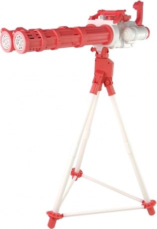 Ta set za mehurčke združuje zabavo in udobje: enostavna montaža podpira fino motoriko otrok, nastavljivo stojalo zagotavlja idealno višino, električni pogon z akumulatorjem pa omogoča neprekinjeno predstavo mehurčkov. Dve zamenljivi »lufi«/glavi ustvarjata učinkovite tokove mehurčkov za impresivne vizualne učinke.
