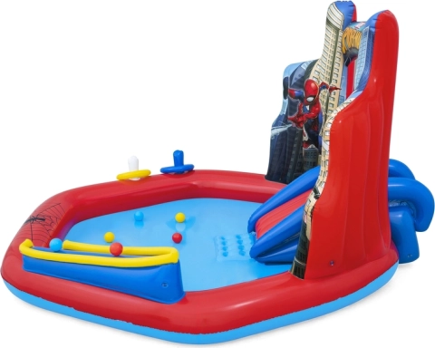 To napihljivo vodno igrišče od podjetja Bestway vključuje vse, kar je potrebno za izvrstno zabavo na soncu. V sončnih mesecih se otroci radi osvežijo v bazenu, ta izdelek pa ponuja še več - zahvaljujoč tobogan in drugim zabavnim elementom bo to pravo središče poletne zabave. Močan PVC živih barv zagotavlja vzdržljivost in dolgo življenjsko dobo. Glavne stvari vključujejo tobogan, ki se konča z mehko blazino, in vodne prhe, ki jih lahko zaženete z vrtno cevjo.