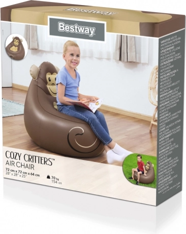 Napihljiv stol v obliki opice je lahek, prenosljiv in zelo enostaven za shranjevanje. Zaradi svojega privlačnega dizajna in robustne konstrukcije je idealen za uporabo tako znotraj kot zunaj.