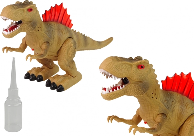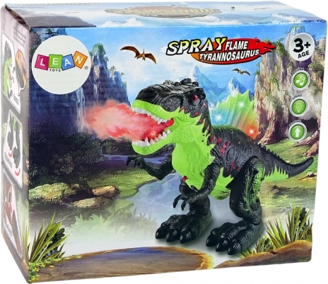 Dinozaver ne le zvočno in svetlobno reagira na dražljaje, ampak njegov ustni odprtina lahko izpihuje vodno paro, kar simulira učinek ognja. Ta varna in fascinantna upodobitev zagotovo podpira domišljijsko igro. Igrača ima med drugim tudi svetlobno hrbtenico, ki osvetljuje hrbet dinozavra.