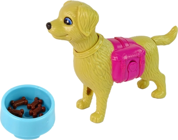 - Lutka, kužek, rožnat povodec, koš za odpadke, posodica s hrano, lopatka