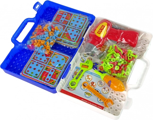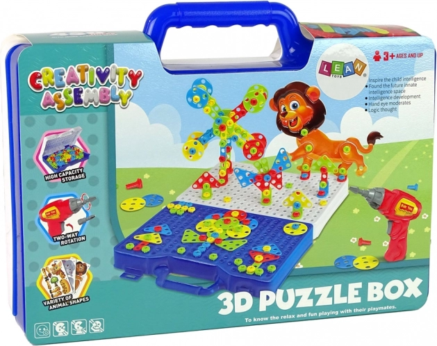 Komplet 3D sestavljanke v modnem kovčku je edinstvena in inovativna igrača, ki spodbuja ustvarjalnost in domišljijo vašega otroka. Osnova s 450 luknjami služi kot plošča za sestavljanje, njena praktična zasnova pa omogoča enostavno prenašanje.