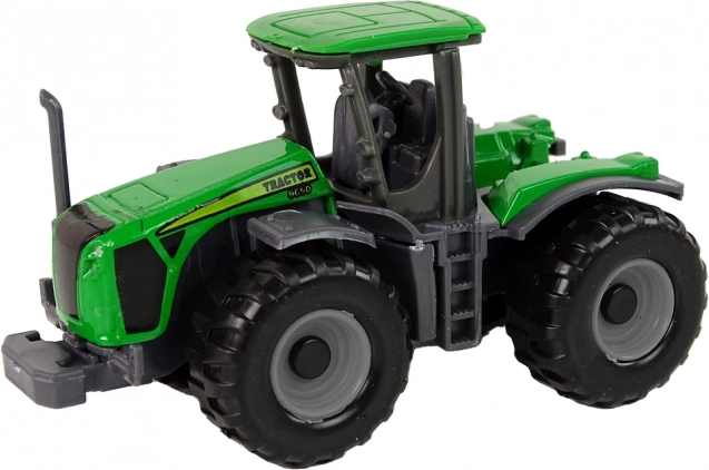 Zeleni otroški traktor s premičnimi kolesi. Odporna plastika, realističen videz, mere 8 × 4,5 × 4 cm. Certifikat CE, EN71. Primerno od 3 let.