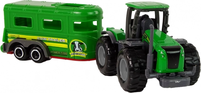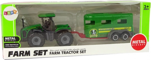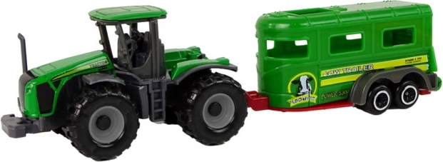 Ta komplet združuje zeleni traktor in ujemajočo se prikolico za kmečke dogodivščine doma in na poti. Kompaktne mere odlično sedejo v otroško roko ter spodbujajo razvoj domišljije in fine motorike. Zahvaljujoč čvrsti plastični konstrukciji je igrača odporna na običajno uporabo.