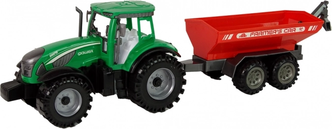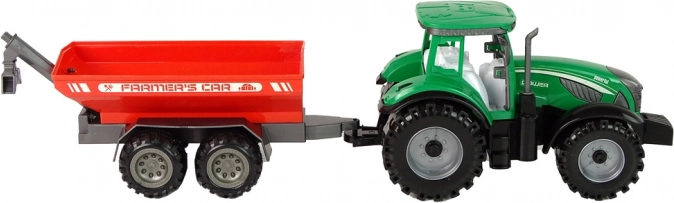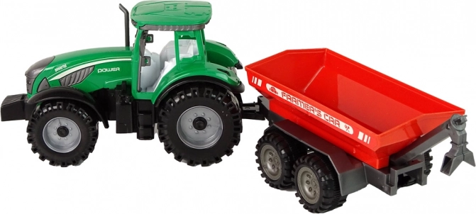 Odkrijte zabavno igračo za male kmete: zeleni traktor z rdečo prikolico in vztrajnostnim pogonom za vožnjo naprej in nazaj. Realistični detajli, vzdržljiva plastična izdelava in velika kolesa spodbujajo domišljijo in razvoj motorike. Idealno za igro na kmetijo in prevažanje drobnih zakladov. Primerno za otroke od 3 let, s certifikatoma CE in standardom EN71.