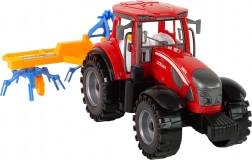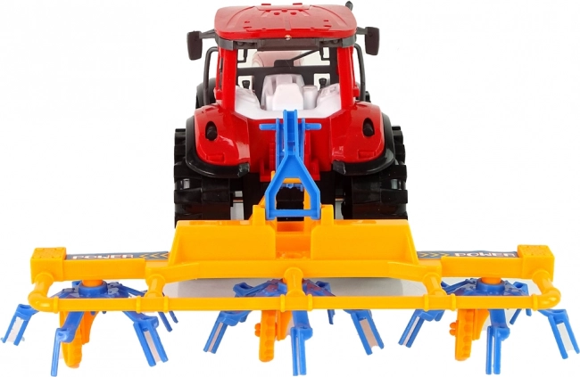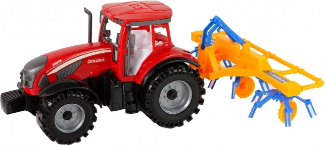 Ta natančno izdelan rdeč traktor z zadaj priklopljenim grabljalnikom spremeni vsako otroško igro v kmečko avanturo. Zahvaljujoč frikcijskemu pogonu se traktor zlahka zapelje naprej in nazaj, medtem ko se premični deli grabljalnika med vožnjo vrtijo in posnemajo pravo delo na polju.