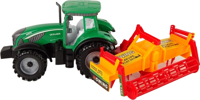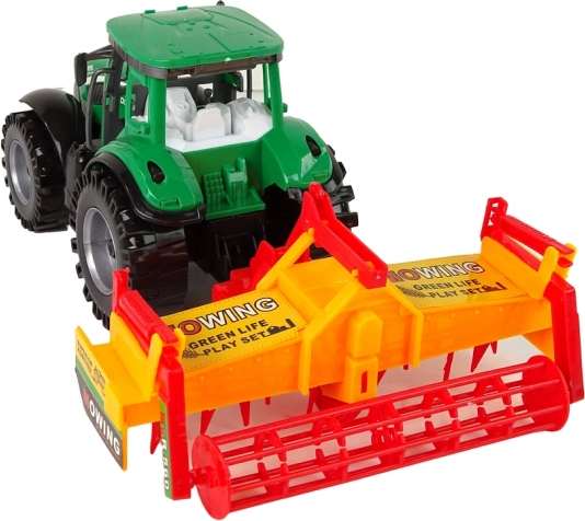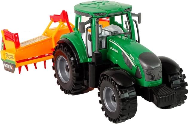 Odkrijte svet kmečkih dogodivščin s tem realističnim kompletom – zeleni traktor z oranžno-rdečim kultivatorjem. Zahvaljujoč vztrajnostnemu pogonu vozi naprej in nazaj, premični elementi simulirajo delo na polju, vzdržljiva plastika pa zagotavlja varno in dolgotrajno zabavo. Idealno za male ljubitelje kmetijstva od 3. leta dalje.