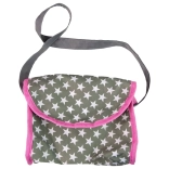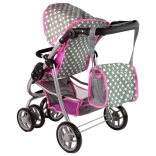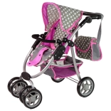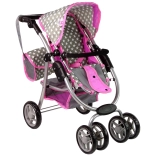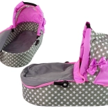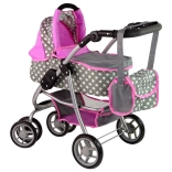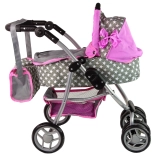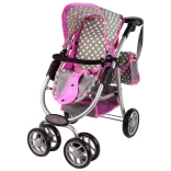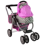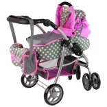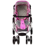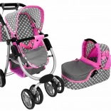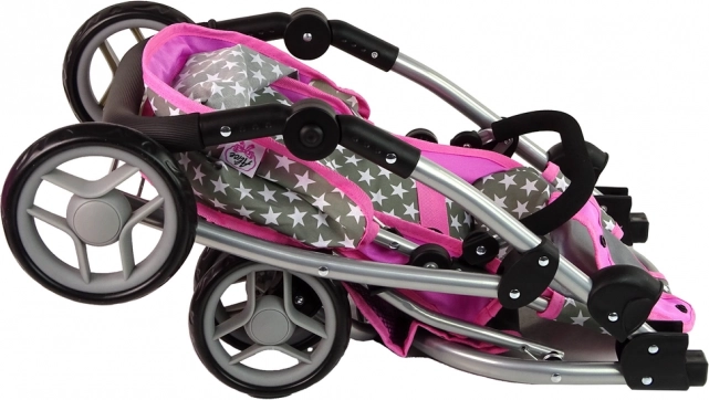 Voziček združuje rožnato in sivo barvo z zvezdastim vzorcem, kar igri mamic doda realističen videz.