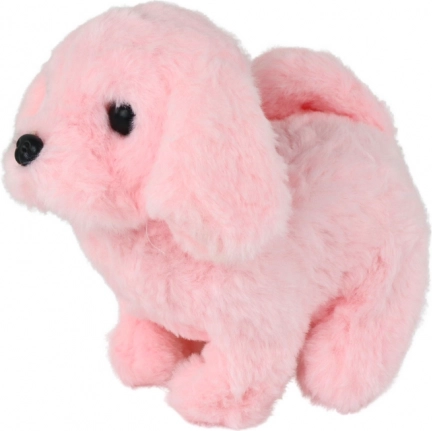 Rožnati interaktivni kužek, ki hodi, laja, premika glavo in maha z repom. Mehak na dotik, certifikata CE/EN71. Za otroke od 3. leta dalje.