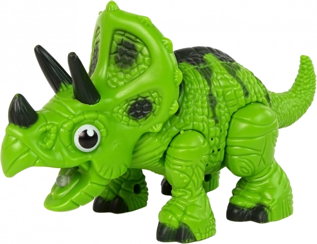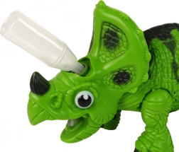 Dinozaver je zasnovan s preprosto konstrukcijo, zaradi katere lahko vaš otrok zlahka odkrije svojega lastnega dinozavra! Pod rogovi se nahaja poseben odprtina, v katero je dovolj kapniti nekaj kapljic vode, in iz gobca bo začela izhajati para. Ta funkcija je za otroke popolnoma varna.