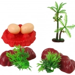 Poleg tega najdete tri male dinozavre, ki igri dodajo dinamiko in raznolikost. Dodatki, kot sta dva kamna, dva grmička in dve jajci, zagotavljajo avtentično ozadje za igro, podlaga pa scenariju doda pristnost. En drevo dopolnjuje komplet in spodbuja ustvarjanje zgodb v naravnem okolju.