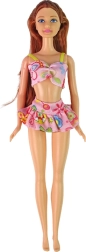 Lutka ima dolge rjave lase in je oblečena v roza vzorec, kot nalašč za poletne pustolovščine.