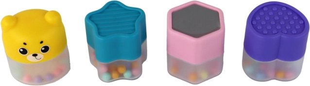 Štiri različne odprtine za razvrščanje oblik in barv, ki podpirajo razvoj prepoznavanja oblik in barv.