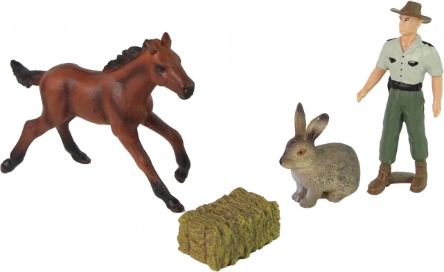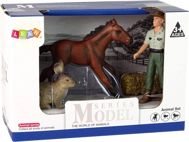 V pakiranju najdete rjavega konja, kmeta, zajca in balo sena – idealno kombinacijo za realistične kmečke prizore. Zaradi kompaktnih mer figurice dobro držijo tudi najmlajši.