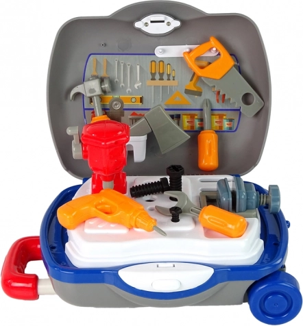 Odkrijte praktičen otroški kovček z orodjem, ki se v hipu spremeni v majhno delavnico. Otroci se preizkusijo v vlogi mehanika, vadijo spretnost rok in potrpežljivost ter se učijo osnovnega dela z orodjem – vse to v obliki varne in zabavne igre. Kovček na kolesih s teleskopskim ročajem je enostaven za prenašanje, zato ga mali mojstri vzamejo s seboj kamor koli.