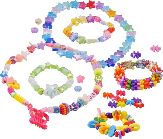 Kreativni komplet za izdelavo nakita za otroke od 5. leta. Pestri biseri in obeski, vrvice za nanizovanje ter darilna embalaža. Ustvarite unikatne zapestnice in ogrlice.