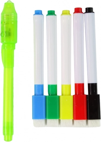 - 2v1: svetleče risanje z LED flomastrom + bela zbrisljiva tabla
