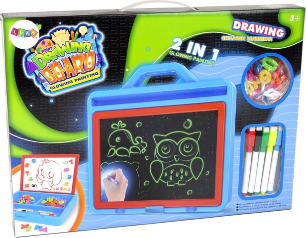 Odkrijte ustvarjalno zabavo s svetlečo magnetno risalno tablo 2v1, ki združuje klasično pisanje na belo tablo z čarobnim LED poudarjanjem ter magnetnimi črkami in številkami. Zahvaljujoč obojestranski zasnovi, vgrajenemu organizatorju s 3 predelki in ponovnemu brisanju je idealna za igro, učenje in vadbo fine motorike brez zapravljanja papirja.