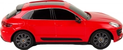 Podrobno izdelani Porsche Macan Turbo v merilu 1:24 z elegantnim rdečim lakom in zatemnjenimi stekli navduši na prvi pogled.