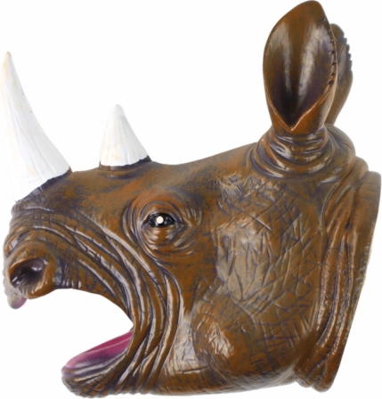 Ta ročna lutka nosoroga deluje izjemno realistično: ima izrazite črne oči, natančno oblikovana roga in strukturirano površino, ki spominja na kožo. Mehka guma je prijetna v roki in omogoča lahko upravljanje čeljusti in izrazov, zato se vsaka zgodba spremeni v živo gledališče.