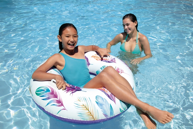 Napihljiv plavalni obroč z ročaji 97 cm – tropski motiv