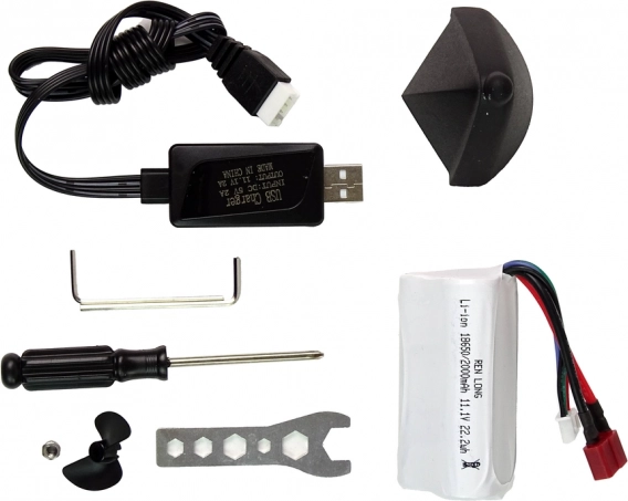 - Ready to Run: vse v paketu – čoln, akumulator, polnilni kabel, orodje, stojalo in rezervni propeler.