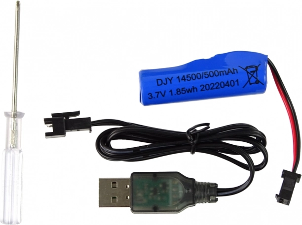 V kompletu je majhen izvijač za priklop priložene 3,7 V baterije na avto. Polnilni kabel za baterijo vam omogoča dolgo igro. Daljinski upravljalnik z merami 15 x 18 x 6 cm (deluje na 2x 1,5 V bateriji – nista priloženi) zagotavlja popoln nadzor. Avtomobilček se premika po navodilih daljinskega upravljalnika (naprej, nazaj), gumb v obliki pnevmatike na upravljalniku pa omogoča natančno manevriranje levo in desno.