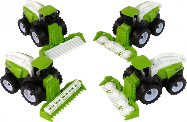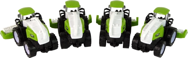 Set štirih otroških traktorjev v realistični zeleni barvi je ustvarjen za male ljubitelje kmetijskih strojev. Realističen dizajn in funkcionalni detajli otrokom omogočajo ustvarjalno igro. Izdelane iz trpežne plastike te igrače zagotavljajo dolgotrajno zabavo. Vsak traktor v velikosti 16 cm x 11 cm x 9 cm je enostaven za upravljanje in ponuja možnost kombiniranja s posnetki kmetijske opreme.