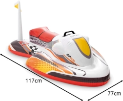Zabaven in varen otroški napihljiv plavalni pripomoček v obliki skuterja znamke INTEX ponuja stabilnost, udobno sedenje in praktičen ročaj za zanesljiv oprijem. Zahvaljujoč široki konstrukciji se med igro ne prevrne, enostavno se napihne in po izpraznitvi zraka se prilega v plažno torbo. Idealen za bazen, jezero in mirne vode.