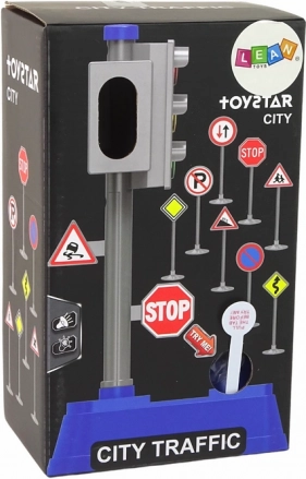 Komplet vsebuje tudi osem opozorilnih in prepovednih znakov višine 9 cm. Z njihovo pomočjo se lahko otroci seznanijo z različnimi prometnimi simboli ter hkrati razvijajo svojo varnostno ozaveščenost.