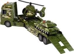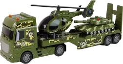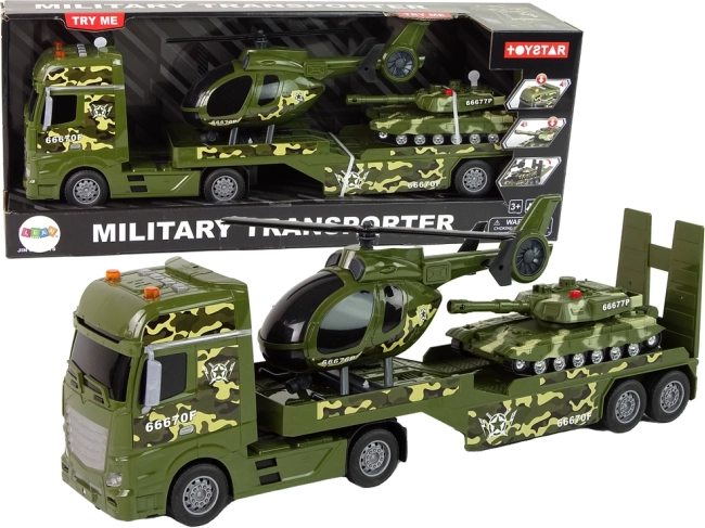 Ta podrobno izdelan set prinaša tri priljubljena vojaška vozila v enotnem kamuflažnem dizajnu: tovorno vozilo z odstranljivo prikolico, helikopter z vrtečimi se rotorji in tank z vztrajnikom. Zahvaljujoč realističnim podrobnostim, premičnim delom in svetlobno-zvočnim učinkom si bodo otroci zlahka ustvarili lastne pustolovske misije.