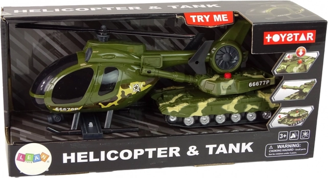 Komplet vsebuje tank in helikopter v ujemajoči kamuflaži – pripravljeno na akcijo takoj po razpakiranju.