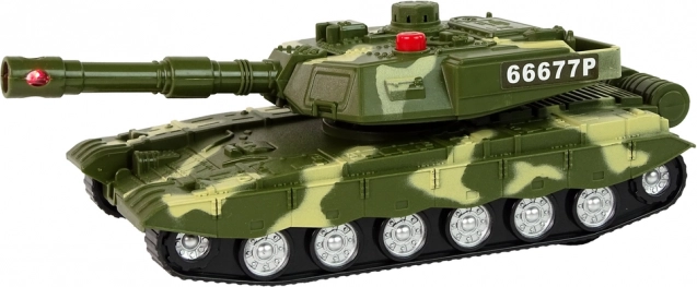 Ta podrobno izdelan tank navduši z vztrajnostnim pogonom za vožnjo naprej in nazaj, možnostjo vrtenja na mestu ter premično cevjo. Po pritisku na rdeči gumb oživi s svetlobnimi in zvočnimi učinki motorja in streljanja, ki ustvarijo avtentično vzdušje bojnega poslanstva.