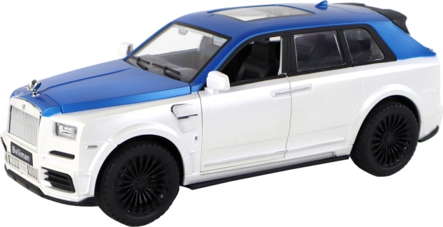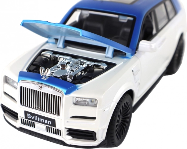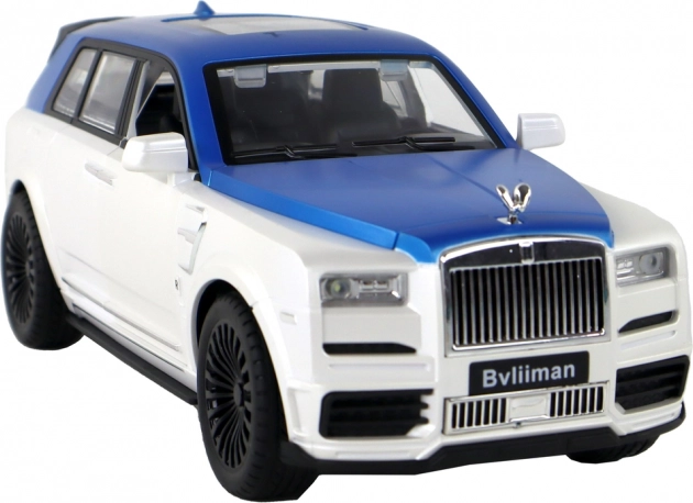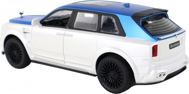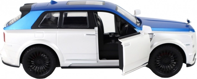 Belo-modra karoserija s srebrnimi detajli in funkcionalnimi vrati daje modelu avtentičen videz kot pri pravem SUV-ju.