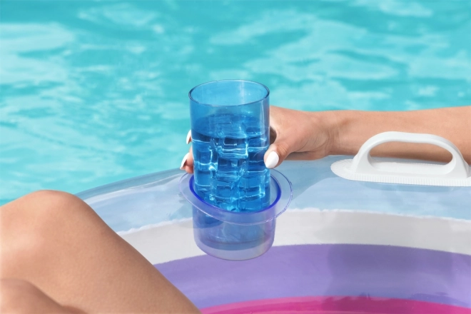 Napihljiv obroč je opremljen z dvema praktičnima držaloma za pijačo, ki omogočata uživanje osvežilnih napitkov neposredno na vodni gladini.
