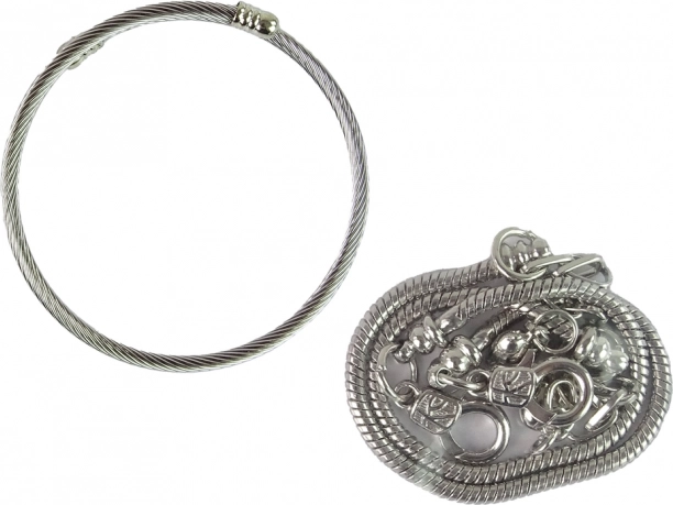 Dve elegantni srebrni zapestnici z različnimi dizajni za osebni videz.