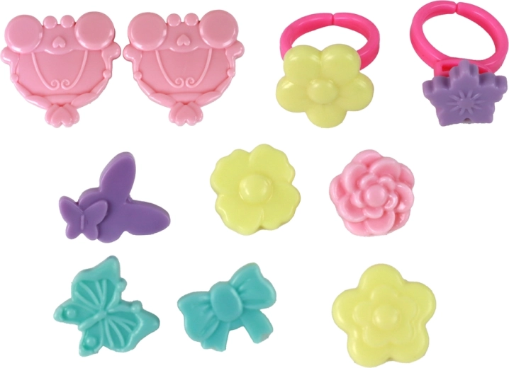 Del kompleta so rožnati copatki z visoko peto, s katerimi se lahko otrok igra eleganco. Komplet vsebuje 5 različnih čopičev za ličenje, ki omogočajo ustvarjanje raznolikih efektov ličenja.