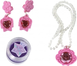 Poleg kozmetike komplet vključuje tudi stilski nakit, ki vsaki stilizaciji doda eleganco in edinstven značaj. Ogrlica in uhančki v rožnati barvi odlično dopolnijo vsako kreacijo ter ji dodajo lesk in dekliški čar.