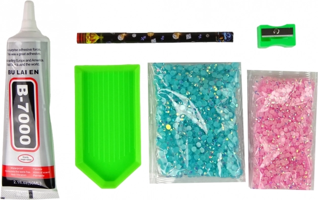 Vsebuje lepilo, kristalčke in druge potrebščine za hiter začetek ustvarjanja.
