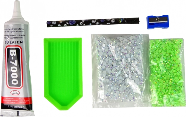 Set vsebuje vsa potrebna orodja in kristalčke za ustvarjanje lastnega diamantnega umetniškega dela.