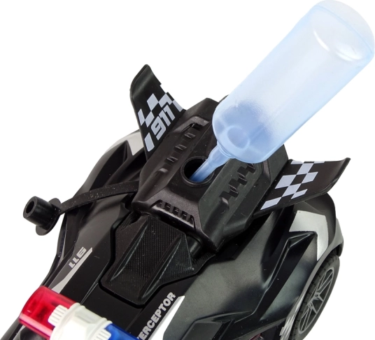 Dovolj je, da z dod priložene plastenke dolijete vodo, in avto med vožnjo ustvarja učinkovit vodni paro, ki poudari vtis prave policijske akcije.