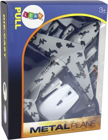 Realistični model letala s kamuflažnim vzorcem in napisom UNITED bo navdušil male in velike ljubitelje letalstva. Ponuja svetlobne in zvočne učinke, vztrajnostni pogon za vožnjo po površini in štiri motorje za avtentičen videz. V paketu najdete tudi stojalo za privlačno razstavitev. Certifikata CE in EN71, primerno od 3 let naprej.