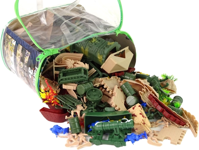 Ta obsežen vojaški set omogoča postavitev celotnega bojišča z obrambnimi linijami, stolpi, artilerijo in vozili, kot so tank in transporterji. Drevesa, sodi in drugi dodatki ustvarjajo avtentičen vojaški teren, ki zagotavlja dolge ure ustvarjalne igre.
