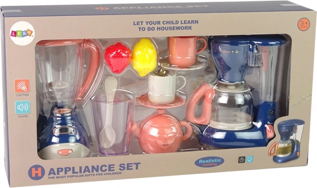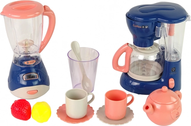 Odkrijte igrivo kuhinjo, polno domišljije! Ta otroški kuhinjski set združuje kavni aparat in mešalnik višine 16 cm z svetlobnimi in zvočnimi učinki, dopolnjen s skodelicami, krožnički, kozarčkom, žličko in sadjem za še bolj realistično igro. Odlično za razvoj ustvarjalnosti, fino motoriko in igranje vlog.