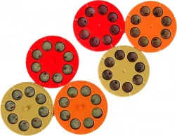 Šest zamenljivih kolutkov s temami, kot so živali, sadje, zelenjava in promet, za neskončen navdih.