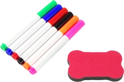 Vključeni je 6 barvnih flomastrov in gobica za hitro brisanje, zato je ustvarjanje čisto in ponovljivo.