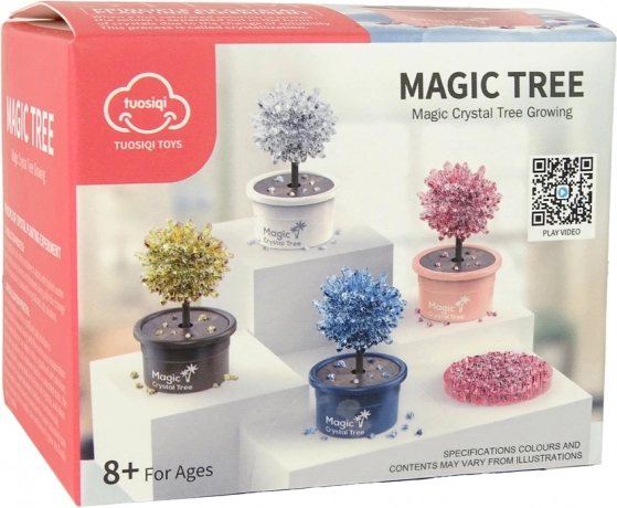 Čarobno kristalno drevo je idealna izbira za radovedne otroke od 8 let naprej in odrasle navdušence nad domačimi poskusi. Kristalne praške preprosto zmešate po navodilih, prelijete z odmerjeno količino vode in opazujete, kako kristali iz dneva v dan rastejo. Prve rezultate boste videli zelo hitro, celotna rast lahko traja od nekaj dni do tednov, odvisno od pogojev in razmerij.