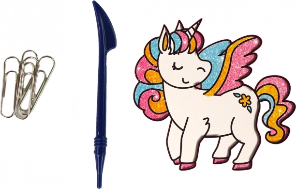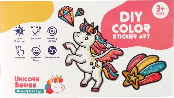 Ta set prinaša različne nalepke s čarobnimi samorogi, pisane mavrice in bleščeče zvezde. Vaš otrok bo užival ob barvanju lastnih dizajnov. Nalepke imajo le obrobo, notranja zapolnitev pa je odvisna od domišljije vsakega otroka. V setu boste našli 8 bleščečih barv, ki dodajo nalepkam sij in bleščanje čarobne dežele.
